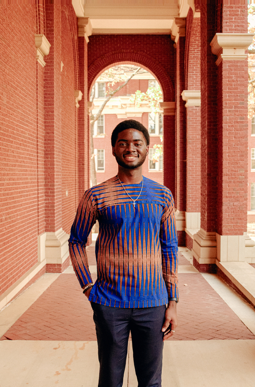 It was not easy for Emmanuel Omari ‘26 to leave his family in Accra, Ghana in 2021. However, at 17 years old, his curiosity and determination to study in the United States gave him the confidence to complete his senior year of high school more than 5,500 miles away in Charlotte, N.C. As an exchange student at Charlotte Country Day School, Omari thrived personally and academically because of the support of his teachers, friends, and host family. He was able to remain in Charlotte after his high school graduation thanks to a presidential scholarship from Queens University of Charlotte.