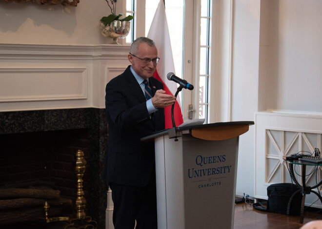“Queens has chosen a multi-disciplinary approach to learning and collaboration as one of the most significant pillars of our strategic framework,” said Queens President Dan Lugo. “That Ambassador Magierowski chose Queens for this visit emphasizes our strength in international education and highlights the importance we give to exposing our Queens community to this type of crucial discussion. Events like these continue to elevate Queens’ role in Charlotte as a convener of meaningful dialogue with influential global leaders.”