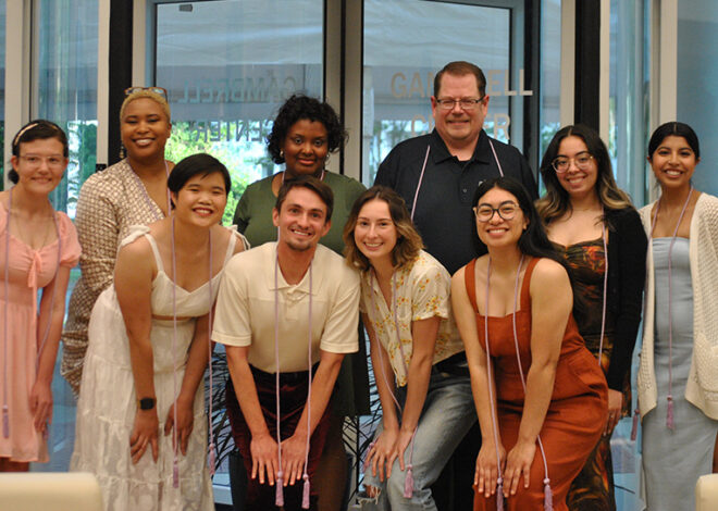 The student address was delivered by Lance Sotelo ’23, a student in the Knight School of Communication and student-athlete on the men’s cross-country and track and field teams. He is the Student Government Association senior class president and a part of the DEI student-athlete committee. Sotelo was also awarded the Atlantic Sun Conference (ASUN) Runner of the Week.