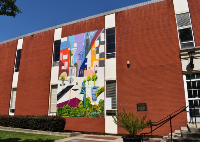 The exhibit, in honor of “Picasso Landscapes: Out of Bounds,” was made possible by a collaboration between the Mint Museum and Talking Walls. In addition to bringing Picasso paintings from all over the world to the museum, local artists were selected to paint their Picasso-inspired murals on concrete canvases across Charlotte, including the Queens campus.