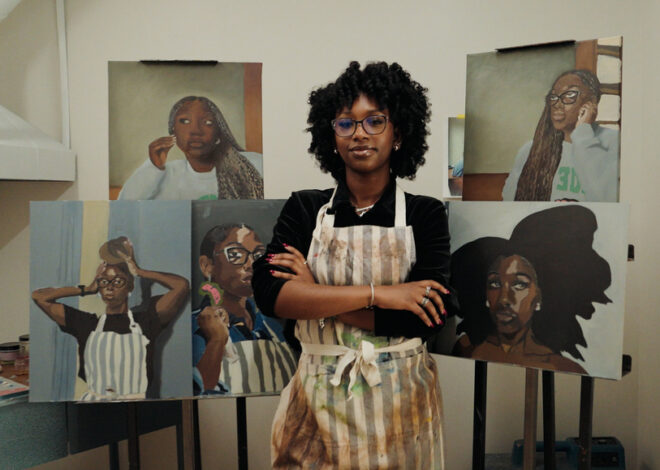 Each one of Pointe’s oil paintings showcase a different hair style and have symbolism woven in through her posture and other stylistic elements in the imagery. Although the senior is making a splash with a bold and creative capstone concept, her road to Queens was uncharted.