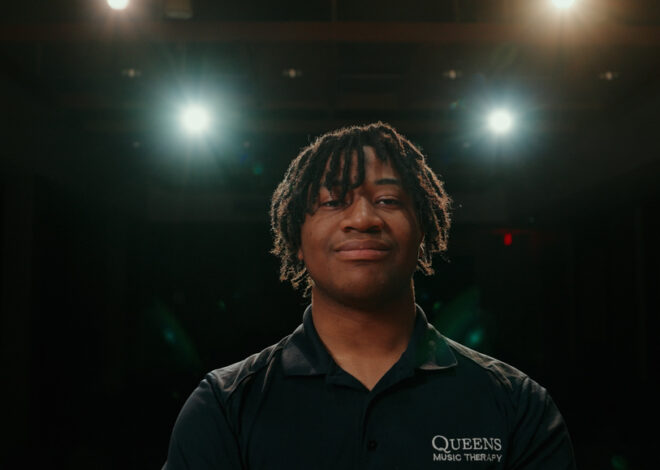 Although he was hesitant that being a percussionist would hold him back, he stepped out in confidence by deciding to attend Queens for music therapy and trusting that he would be well-supported in his pursuit of learning voice, guitar, and piano.