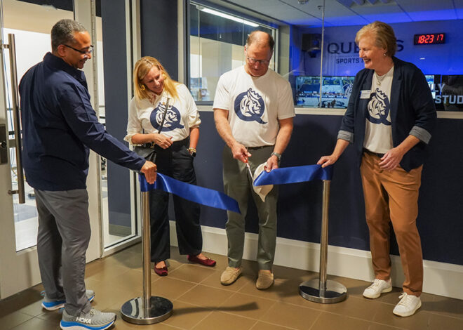 Supported by Brandon and Karen Perry, the Perry Family Broadcast Studio at Queens is a cutting-edge facility that is now a cornerstone of hands-on learning, particularly for students in sports communication, multimedia production, and related fields. It’s proof of the role athletics can play in enhancing a university’s academics.